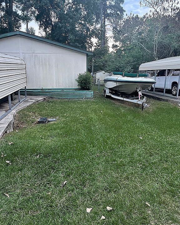 CASH OR HARDMONEY ONLY Older mobile home in Lake Conroe Village that sits on 2 small lots. Driveway has a 2 car carport but will fit 6 vehicles in driveway. Decent size storage unit with power in back yard. Back yard is fenced off. Full covered porch on front of home with another Storage shed at end of porch! Very large master bedroom with a nice a size master bath which holds a large oval tub. Lots of cabinet space in kitchen with a 2 yr old stainless steel diswasher. There is some spots at edge of porch roof that needs fixing. PIctures will come later. Will add more during daylight