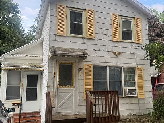 PRICE REDUCED!! Spacious 3 bedroom/1 bath home offers 1 bedroom on main level, laundry room with cabinet space and enclosed back porch leading to fenced yard with shed. Second level has 2 bedroom with an additional area that could be used for another bedroom. Located on a dead end street. Plenty of storage space! Close to the Dunkirk schools. Low taxes!!