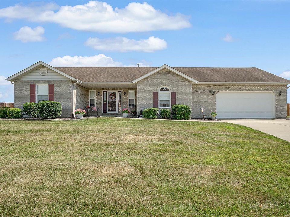 This move-in-ready ranch, offers a split-bedroom layout and generous living spaces. Enjoy outdoor relaxation on your front covered porch and watch the ball games from your rear covered patio. Spacious living room with a vaulted ceiling & corner gas fireplace. The kitchen features granite countertops, a message center/desk, breakfast bar, breakfast nook, stainless steel appliances including a range, microwave and the dishwasher is only 6 months old. The primary bedroom is a true retreat, boasting a large walk-in closet and a luxurious ensuite bathroom with a jetted tub, separate shower, and linen closet. Modern LVT flooring adds a touch of style to the kitchen, bathrooms, and laundry room. Recent updates include a new HVAC system (2020).The garage is spacious with storage space and a new garage door only 4 years old. The full basement with an egress window and bathroom rough-in, offers potential for future finishing. Don't miss this opportunity. Schedule your showing appointment today!