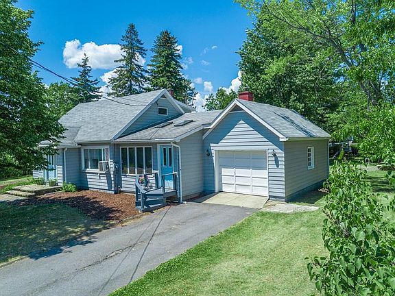 This spacious hamlet cape feels like home from the moment you walk in! Hardwood floors in many rooms, remodeled kitchen that opens into large, bright dining room. Renovated living room, great for entertaining or just a nice space for a quiet evening. Featuring a pellet stove insert with brick fireplace, perfect for cozy nights! Sunroom off the back of the house leads to large, private backyard! Outdoor fireplace and patio, plus a deck! Slab in place for a shed. Partially finished basement for rec room or whatever you need! Tons of storage. Close to exit 34 for an easy commute to Plattsburgh. Mountain views! Make this your home today!