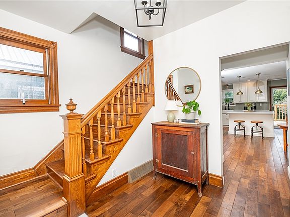 This 3 bedroom 2 full bath home has been tastefully upgraded from top to bottom, corner to corner! From the welcoming front porch, you enter an open and airy foyer showcasing stunning original trim work. Pass through an entry with original pocket door into a large warm living room with a show case fireplace. Another pocket door leads you to the spacious dining room. From the dining room you will find a modern bright kitchen with quartz countertops which also features a second staircase to the second story. Off the kitchen is the laundry room and full bath. Three lovely bedrooms with ample closet space and another stylish full bathroom comprise the second floor. From the second floor you access the charming and versatile walk up attic space you can use in many ways including the ability for a 4th bedroom. A spacious deck and large backyard make for a wonderful place to entertain! This home is simply beautiful!
