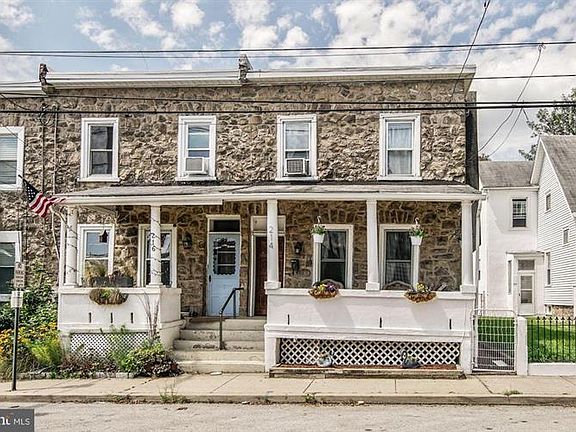 Ambler Boro, with Parking for UNDER $210, 000! Welcome to 214 S Chestnut. This home features 2 bedrooms, 1 full and 1 half Bath, and your own parking garage! A Lovely end unit stone row home in Ambler Boro located just 3 blocks from the Ambler train station and all that Ambler has to offer. The first floor features large living and dining room with hard wooflooring, and wood burning fire place. Through the kitchen with updated stainless steel appliances and plenty of light is the Den Office (could be used as a 3rd bedroom). From there, enjoy time on the porch or in your private back yard . The second floor features 2 bedrooms and a fully remodeled full bath with large tub and double vanity. On top of the excellent location home features: Recently seal coated roof, updated full bath, tankless water heater, Gas heat, newer kitchen appliances, brand new washer and ceiling fans. Home includes complimentary 1 year HMS Home Warranty. Excellent walkability to town, shopping, parks, and trails! Come join the Ambler family! SHOWINGS BEGIN at Open House Sunday 7 28 1:00pm.