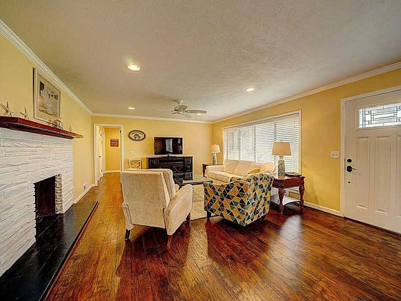 POOL HOME IN THE COVE! This 4 bed 3 full bath Cove home has minimal damage from the storm. There will be a new ROOF in place before closing. Minor soffit and fence repair as well. This home has a large living/formal dining area, a separate den and a breakfast nook off the kitchen. Engineered wood floors throughout the home. There is a large master suite with a large walk in closet and master bath that is split from the rest of the rooms. On the opposite side of the home is another smaller master suite with its own separate bath.Tankless water heater. Outside you have a beautiful covered patio with an outdoor fireplace and entertainment area overlooking the POOL. You can access the back parking area from the back alleyway which would be perfect for parking a boat or small RV out of sight.