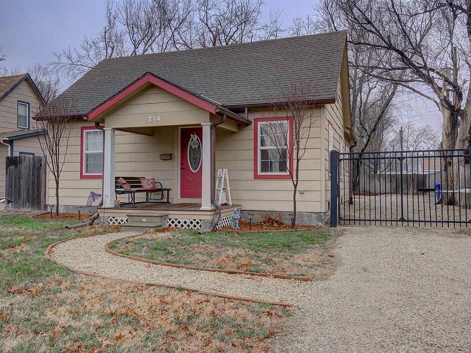 Cute as a Button! This Adorable Bungalow Home is conveniently located close to McPherson Middle School. Beautiful, Fresh, and Full of Updates! 3 Bedrooms, 1 Bath, Remote Gate, and Pristine Detached Garage. Over 1300 sqft of Meticulously Cared for Living Space to make you Feel at Home instantly. Covered Front Porch, New Carpet, and Fresh Paint, finished off with White Crown Molding. Living Room Opens right up to Dining, then Kitchen, for a very smooth and friendly transition. Impressive Kitchen & Dining has Gorgeous Cabinetry & Counter Tops, Tiled Floor, and Great Natural Light. Incredible 4 piece Bathroom is made for pampering, with same Gorgeous White Cabinetry and Dark Gray Tiled Floor and Walls, for a Beautiful Eye-Catching Contrast. Three great Bedrooms, including an Extra Spacious Master with Built-ins. Backyard is made for Entertaining, with Nice Deck, Privacy Fence, and Rock Path with Stepping Stones leading to Excellent Garage.