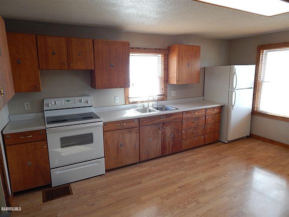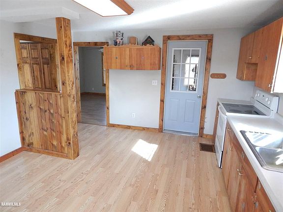 Great starter home or rental situated on a corner lot. 2 bed, 1 bath, with main floor laundry. Enclosed front and back porches. Full, unfinished basement, with outside access. Updates include: all windows (except porch) replaced, bathroom remodel 2013, kitchen 2008, high efficiency furnace 2011, water softener 2016. 22'x22' detached garage with an additional 12'x15' workshop attached to the front. Backyard features concrete patio with fire pit.