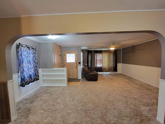 This economical home, located at 214 S Lincoln St, Smith Center, Kansas, sets on a corner lot. The home is a two bedroom, 1.5 bath, with a full partially finished basement. It has a single attached garage, a double unattached garage and a storage shed. Kitchen: Simulated wood panel flooring Cabinets with laminate countertops & double sink Stove, refrigerator and dishwasher remain Dining & Living: Open Concept Carpeting Ceiling fan light Built-in display shelves and niche Two Bedrooms: Carpeting and large closets Bathroom: Large shower Large vanity with storage Wall Closet for Storage Laundry: Very spacious Washer & Dryer remain Laundry sink Drop-down ironing board Built-in storage cabinets Basement: Full Partially Finished Goodman Central Heat/AC Water Heater 2018 Sump Pump Large walk-in shower, sink, plumbed for toilet Two additional rooms with tile flooring and window well Attached Single Garage: Automatic Overhead Door Concrete Floor Unattached Double Garage 20x20 Utility Shed 12x8 Lot 84x84 Roof 2019 Property Taxes: $636.48 LISTING PRICE $93,000