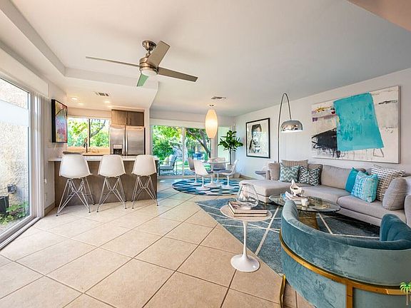Look NO FURTHER. Stunning completely remodeled 2 bedroom 2 bath townhome in the highly sought after gated Sundial Development. This home was completely redone with newer kitchen and baths, with modern cabinetry, quartz countertops and newer appliances/fixtures throughout. Doors and windows have been replaced. Ceramic Tile floors downstairs and bamboo flooring on upper levels. Newer washer & dryer, water softener and newer garage door opener. Multiple patio areas to enjoy the beautiful Palm Springs weather and views of the San Jacinto Mountains. All this on FEE land make this one a MUST SEE !! Spectacular grounds, 4 pools and spas, tennis courts and clubhouse. Furnishings are available outside of escrow. Call TODAY !!