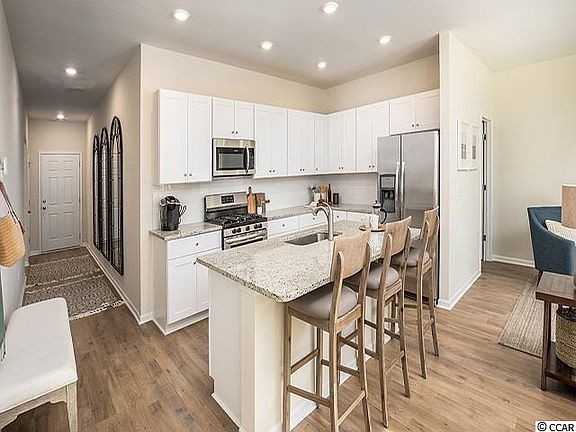 These pictures are of a "Similar Home", it is a MODEL home with extra options. Beach Village is our newest community located in Deerfield. This Dover is 3 bedroom 2 bath. This home features Granite kitchen countertops with subway tile. Stainless steel appliances and Laminate flooring. A gas community with a tankless water heater and gas stove. Backing to water. Low HOA