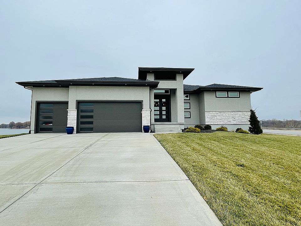 Beautiful one year old custom built, reverse style home with an open floor plan great for entertaining. Soaring ceilings and stunning lake views as you walk into this 5 bedrooms & 4.5 bath home. Attention to detail in the kitchen that features oversized island, incredible butler's pantry and top of the line appliances. Main floor has a statement piece fireplace and hardwood floor throughout. Spacious master bedroom with enormous closet, laundry and incredible bath. Bedroom with full bathroom and office/playroom also located on main floor. Lower level includes a sizable family room, bar, laundry room, craft room and 3 additional bedrooms with 2.5 bathrooms. The covered and extended patio is just the beginning of the unbelievable back yard views enclosed by black wrought iron fence. Home is located in Raintree Lake, an outdoor lifestyle community featuring boating and fishing lake, miles of paved walking trails, large community pool, 2 playgrounds, 2 community clubhouses, and endless family fun activities.