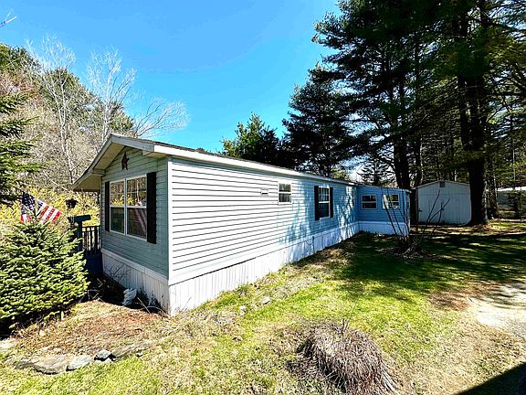 Well maintained 1996 Redman New Moon 70' x 14' two bedroom one bathroom 924 finished square foot single wide mobile home in Sandy Pines mobile home park in East Montpelier. Behind the home is a walking trail along the old railroad bed. Dogs are allowed - see the attached allowed breeds list. Inside the home, there is a wide open floor plan with the spacious fully equipped kitchen, dining area and living room. One large bedroom is located in the back. There is a walk-in tub in the bathroom that needs a new seal. The second bedroom is on the other side of the bathroom. The hallway washer and dryer stay with the home. There are two attached enclosed porches. One has beautiful wood walls and ceiling and the other has a door to the back yard and access to the large detached shed that has a second level for additional storage. The home is on a corner lot with extra privacy provided by forsythia, trees and bushes. There are two paved parking spaces that the homeowner maintains. Lot rent is $485. and includes water, sewer, road plowing and trash. Buyers must fill out Sandy Pines Park Application.