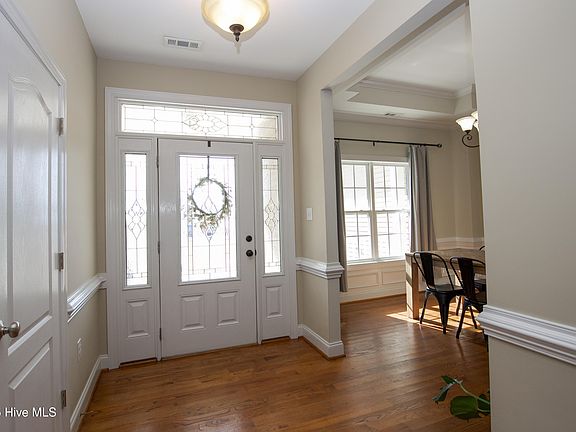 Upon entry through your covered front porch, the front door opens with a view into your formal dining room and beautiful living room complete with gas logs and a vaulted ceiling. Hardwood flooring runs throughout the main living areas of the first floor, including the kitchen. The kitchen has an eat in breakfast nook, granite countertops, tile backsplash, and dedicated pantry. A separate laundry room with tile flooring connects to the two car garage - plenty of room for storage and even a home gym!