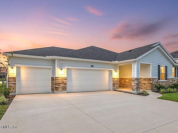 Everything is done for you in this STUNNING, like new waterfront home situated on an 85' wide lot with fabulous SUNSET VIEWS! NO CDD fees! Split bedroom floorplan PLUS an extra flex room! TONS of upgrades inc. a whole house water filtration system, upgraded 42'' cabinets w/trim & hardware, pendant lighting, large island with breakfast bar, S/S appliances, ceiling fans, blinds, upgraded lighting, high ceilings, fully upgraded baths, wood laminate flooring and quartz countertops throughout. Beautiful French doors lead to the extended covered patio overlooking the serene pond and fountain. 3 car extended garage with keypad, Shark coating, plumbed for a sink. Ring doorbell inc. The Primary bedroom closet has an in wall safe! IMMACULATE and move in ready with BUILDER WARRANTY, Friendly Community with monthly get togethers! Large Community pool, golf club, playground, tennis courts, pickleball, private fishing pier and events at The Riverview Club. Close to the beaches, shopping, restaurants and the Historic district of St. Augustine!