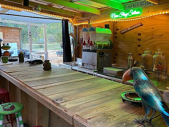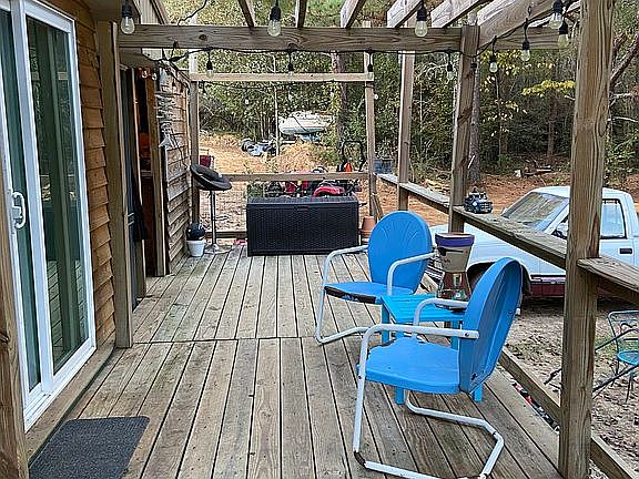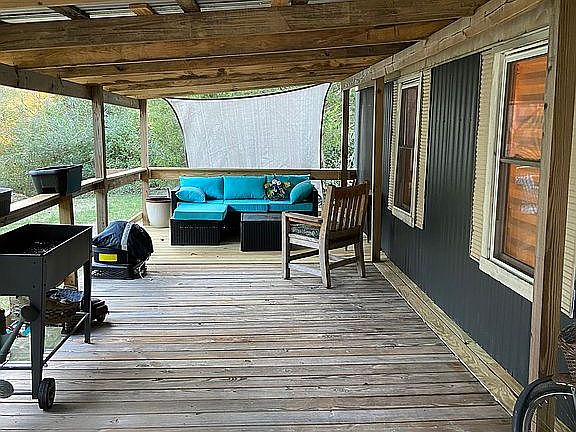 Showings by appointment only! 2 bedrooms and 2 baths with a spacious open-concept kitchen/living room area including an electric fireplace, perfect for enjoying warmth and charm during chilly evenings. The 2 acres include a covered open workshop/carport. Renovations include a new well pump (has 2 wells) and a water filtration system have been installed, Plus, there's an extra 12x12 bonus room that can serve as a convenient mud room or a creative art studio. Outside includes an expansive 140 foot wrap around deck that around the home. The back deck features an open bar area, perfect for hosting gatherings, complete with ample space for a large table and a BBQ. currently not de-titled.