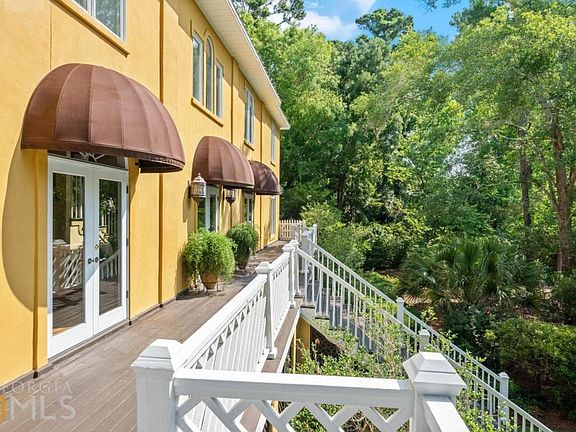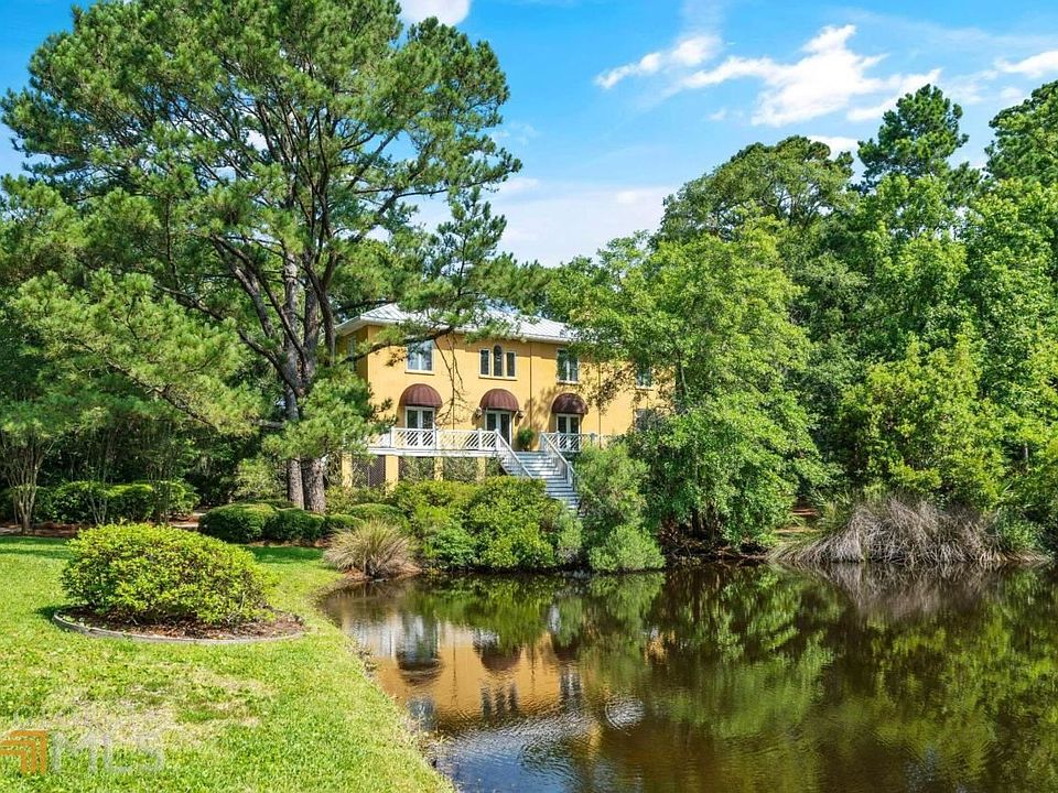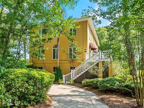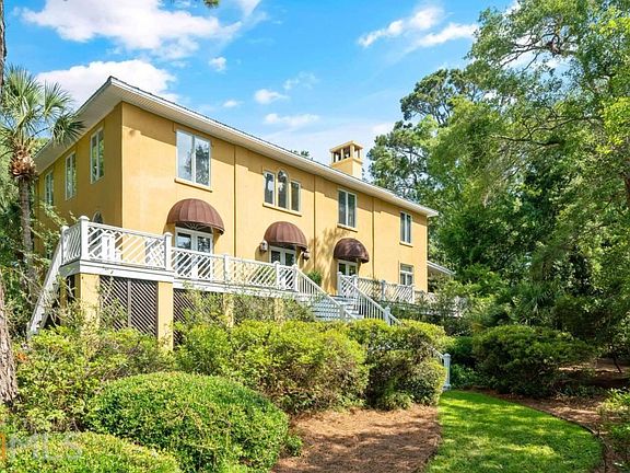 Sheer beauty in Shaws Bounty, one of the most livable & desirable subdivisions on SSI, nestled between the marshes of the Mackay River & marshes of Sea Island w/ expansive lots, gorgeous tree canopy, & peaceful privacy. The mid-south location is convenient to all that encompasses the heart & soul of island living. This custom-built colonial home includes 5 bedrooms & 4 full bathrooms. The ground level is a 4-car garage w/ bonus space including 2 heated and cooled shop areas. The main living level offers a bedroom w/ full bath, formal living & dining rooms, open concept kitchen w/ breakfast table, cozy den with fireplace & built-ins, veranda overlooking the pond, and spectacular covered porch for entertaining. The upstairs has 4 spacious bedrooms, 3 full baths, and laundry room. Home features include room for pool, central vac, crown molding, speaker system, Mexican Satillo tile, natural gas, tall ceilings, irrigation, outdoor shower, great natural light & more. ItCOs a SSI must see!