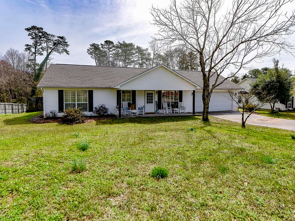 One level living in a quiet setting on a large double lot (partially wooded). This 3 bed 2 bath home is located on a cul-de-sac not far off of main roads. The open floor plan offers room for entertaining friends or family. The kitchen and bathrooms have been remodeled as well as new flooring added. Home offers are large fenced back yard and a two car garage.