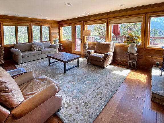 This custom designed home is built to take advantage of incredible views of June Lake and Gull Lake right from your dining room table. South facing rooms such as the living room, primary bedroom and spacious deck maximize your viewscape of Gull Lake and Carson Peak. Built by a master homebuilder and the original owner you will find the quality exceptional from the granite, marble and quartzite counters, designer tiles, and rich redwood throughout the home. The main floor has double entry mudrooms, a bedroom, hallway bathroom, laundry area, kitchen, dining area and living room. The second floor features a guest en suite and private quarters with the main bedroom, bathroom with marble and dual sinks, tiled glass shower, walk-in closet and office space. Additionally a large indoor storage area functions as a pantry, pellet storage or small work area with it’s own outside access. From the main floor step down to the “indoor grotto”-you have to see it to imagine the potential! An expansive Trex deck is designed for entertaining, BBQing and enjoying the hot tub. Review the floorplan, virtual tour, photos, and contract your agent, then come visit us during our open house on 5/28 and 5/29 from 12 to 4.