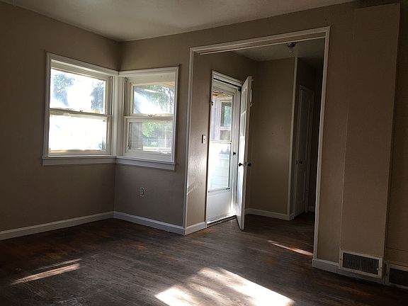 Photos are before and during the remodel. Living room to kitchen is now open floor plan, all new drywall, kitchen cabinets have been removed, new outlets and new light switches and overhead lighting has been installed. The bathroom has been gutted, toilet removed, shower removed with new vanity to be installed, all new drywall and bathroom light fixtures installed, fresh paint throughout and the house, new laminate flooring is being installed throughout. The house is ready for your personal touches. No realtors or brokers