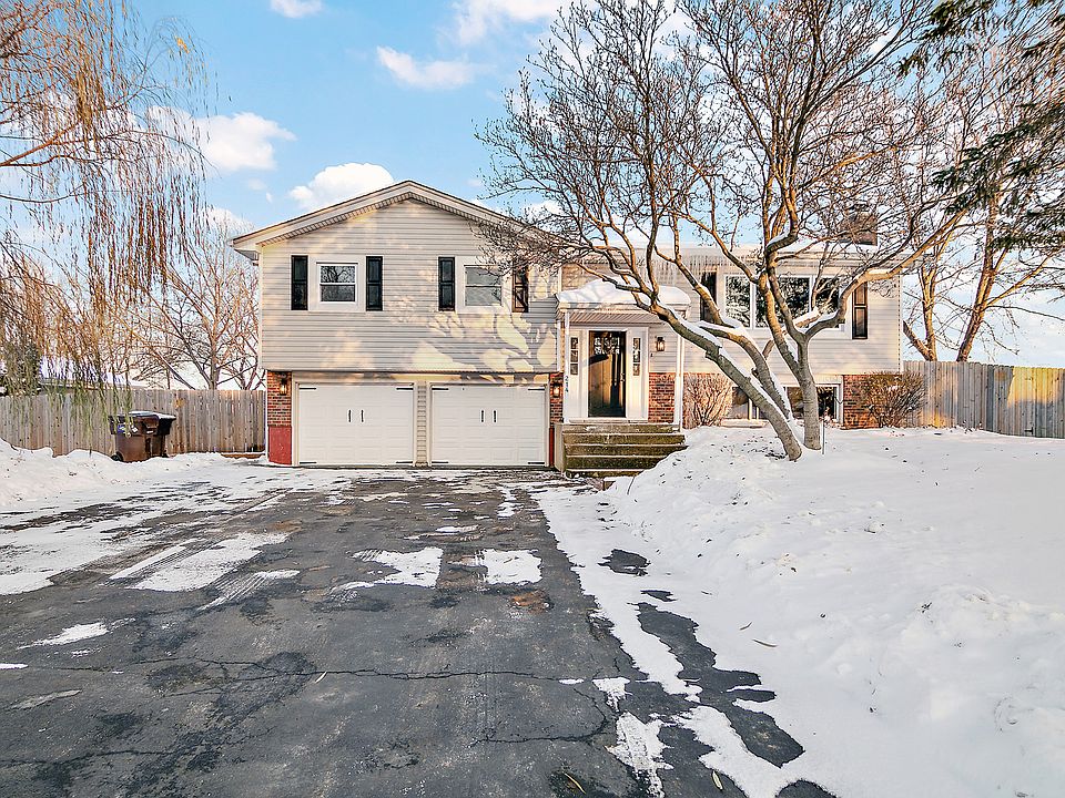 Discover comfort, style, and convenience in this refreshed raised ranch, perfectly positioned in a sought-after New Lenox location-just minutes from shopping, restaurants, schools, and more. Offering 4 bedrooms and 3 full bathrooms, this home provides an ideal layout for today's lifestyle. Step inside to a bright, updated interior appointed with modern finishes throughout. The main level features sun-filled living spaces accented by crisp white trim, paneled doors, upgraded lighting, and attractive wood laminate flooring. The stunning kitchen impresses with granite countertops, stainless steel appliances, and a dinette area that opens directly to the deck-perfect for effortless indoor-outdoor entertaining. Three spacious bedrooms and two beautifully remodeled full bathrooms complete this level. The finished lower level expands your living options with a cozy family room anchored by a classic brick fireplace, a private fourth bedroom ideal for guests or an office, a third full bathroom, and a large laundry room offering excellent storage and functionality. Outside is where this property truly shines. Set on a generous half-acre lot, the backyard feels like your own private retreat-expansive, peaceful, and surrounded by mature landscaping for natural privacy. Whether hosting summer parties, playing catch, or simply relaxing, there is room for everyone and everything. Enjoy mornings on the deck overlooking the yard, evenings around the patio, or make use of the powered shed with water for gardening and hobbies. Additional exterior highlights include a freshly seal-coated driveway and an oversized two-car garage. Backing to Schoolhouse Manor Park, the outdoor space offers tranquil wooded views with no neighbors directly behind you-enhancing both privacy and serenity. Move-in ready and perfectly located, this New Lenox gem blends modern updates, spacious living, and a truly remarkable yard-an opportunity you won't want to miss.
