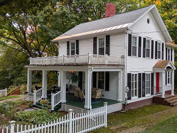 Step onto the charming brick walkway and rocking chair porch—you'll fall in love blending old-world charm with modern conveniences. Plus a BONUS: a 2nd residence for rental income! Enjoy a chef's kitchen with granite counters and a large center island, and a fabulous family room with a cozy wood-burning fireplace. The sunlit formal dining room boasts French doors, and a first-floor den with a private entrance is perfect for an office. Upstairs, discover 4 bedrooms, including a primary ensuite and a 2nd full bath with laundry. Relax outdoors on your porches overlooking lush gardens and serene woods. Full of upgrades: gleaming wood floors, crown molding, an on-demand hot water system,8.5 ft ceilings with over 2,200 sq. ft., plus rental unit.