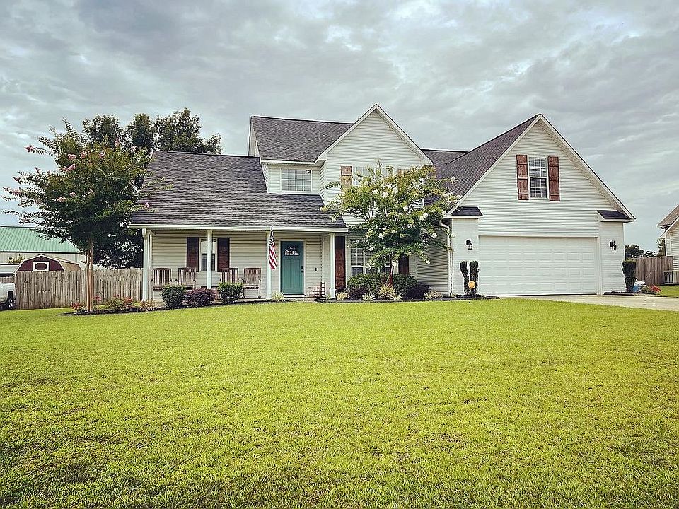 Covered front porch beckons you home! 5BR/2.5BA in sought after school zone. Spacious living room w/brick-surround fireplace & picturesque front windows. Large kitchen w/plenty of counter space & cabinets, eat-in area, breakfast bar & pantry and additional formal dining room. Roomy master bedroom on main floor w/master bath featuring walk-in closet & garden tub. 4 spacious bedrooms and full bath on the second floor. Fantastic brick patio w/built in fireplace, inground pool & fenced yard. Sellers request proof of pre-approval prior to showing home.