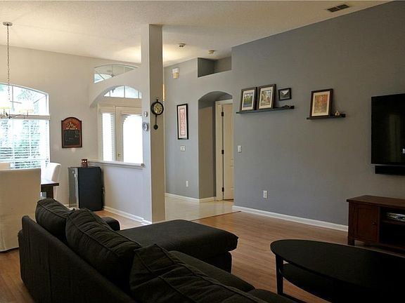 Beautiful 4 bedroom 3 full bathroom mini-pool home with 3 car garage on cul-de-sac street in Winding Hollow. This home is move in ready with beautiful modern paint and and open, spacious floorplan. Kitchen overlooks huge family room perfect for family to play or adults to entertain by the scenic wood burning fireplace. Master bedroom is a great size, with giant adjoining master bathroom offering dual his/hers sinks, soaking roman tub, and separate shower. Three way split plan offers tons of privacy. Back screened in porch features a large covered lanai area and a MINI POOL with fountain feature. Please note that the mini pool is much smaller than a normal size pool and originally was designed as a hot tub with seating. New roof in 2015, new AC with rapid cooling feature in 2013, new appliances in 2013, fresh paint, new faucets in kitchen and master bathroom 2015. Great house!