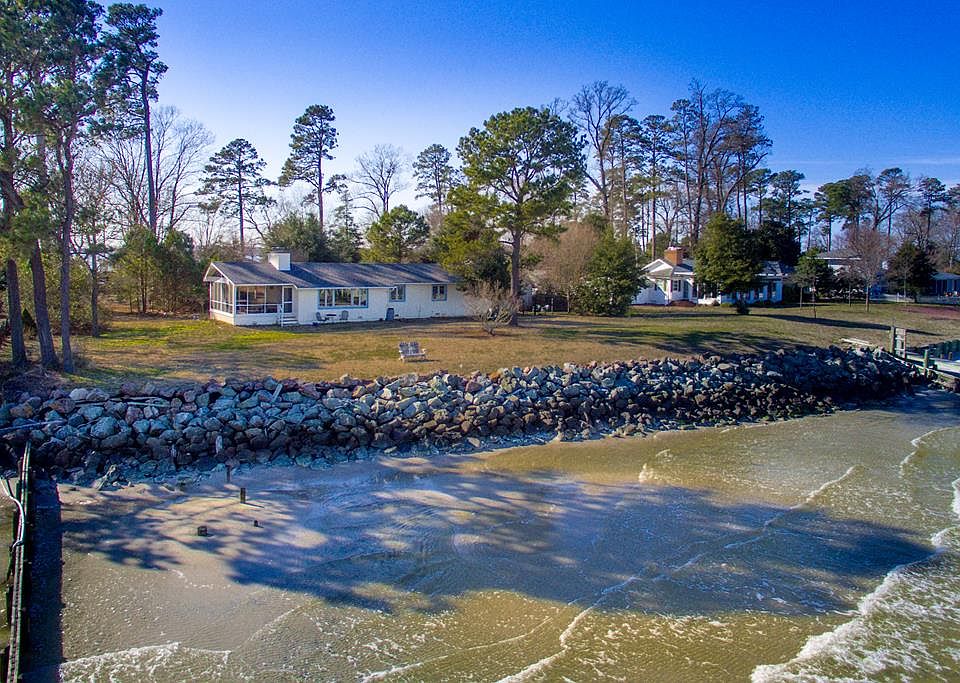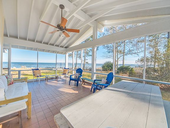 Chesapeake Bay Waterfront cottage located in the heart of Deltaville on sought after Stove Point. Take in endless, breathtaking views of the Bay, and incredible sunrises. Enjoy frolicking in the bay from your own private beach or relax on the screened porch with your favorite beverage. This 1490 sq ft cottage features 3 bedrooms with fantastic water views, 2.5 baths, a spacious kitchen, living room, dining area and a screened porch. Along with a newer HVAC system and newer roof, the house has been freshly painted within the past 2 years. A 1.5 story garage was built in 2007 and can easily be converted into a guest house. Just a short golf cart ride to the Fishing Bay Yacht Club & minutes to the best fishing & cruising grounds of the River & the Bay. This is a MUST see.