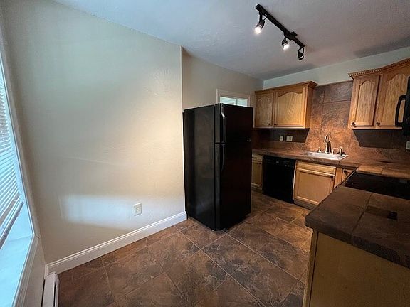 This one bedroom apartment is on the first floor of a 6 unit building. It has a nice size kitchen with ceramic tile, track lighting, and black appliances including dishwasher, built-in microwave, glass top stove, and full-size refrigerator. There are hardwood floors throughout, large double-pane windows, ceiling fan, and a double door closet in the bedroom. The bathroom has porcelain tile and inlaid tumbled marble accents. This apartment has a private entrance directly into the living room. The landlord pays water, sewage and trash. Tenants pay electric. There are electric baseboard heaters and a window AC unit will be installed upon request.