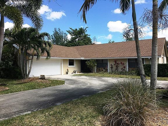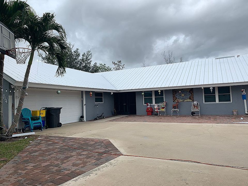Warm Single Family Home -fresh painted-located in huge private 3/4 acre lot. New kitchen. New lifetime metal roof. New flooring. New impact windows. New AC system. Home includes 20x20 bonus room off the master bedroom that can be used for an office, guest room or the perfect nursery. Three sets of french doors that lead to the 34x12 covered screened patio with built in bar area and sink. Great for entertaining! Enjoy the peaceful view of the brand new heated salt water pool with hot tub from the huge family room. Large utility room and great storage area. Dining room off kitchen.