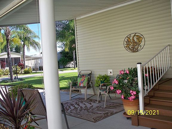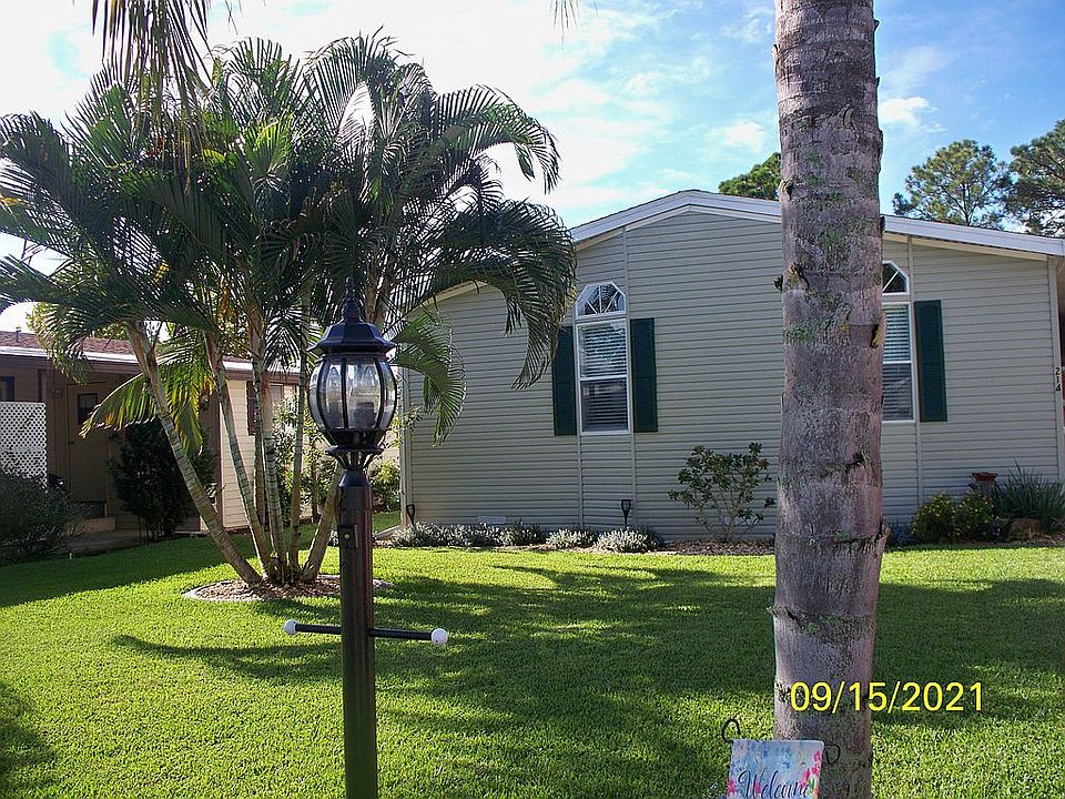 This recently updated two bedroom and two bath double wide home is move in ready on a large lot in a 55+ community. The house is freshly painted and has new vinyl laminate flooring plus 5" base boards in the kitchen, living room, both bedrooms and both baths. The kitchen is open to both the living room and dining room, has a large pantry, new tile backsplash, under cabinet lighting, and includes a breakfast nook with washer an dryer located behind folding doors. The master suit has new louvered doors to large walk-in closet, new bathroom vanity (with double sinks) and lights, and walk-in shower. Both bathrooms have sky lights. This home also has a 16'x14' sunroom with new carpet, vinyl windows, its own air conditioner, plus pull down blinds. There is a 6'x10' shed, new curbing and updated landscaping. The home is on city sewer/water and has a programable irrigation system with a well. Small pets are welcome. Included in the selling price are the kitchen appliances, washer and dryer, sofa, chair and love seat, breakfast nook table and chairs, and furniture in both bedrooms. Please give me a call at 863-202-0614 or 683-368-2190 with questions or to schedule an appointment to see this lovely home.