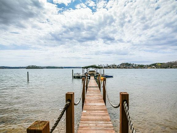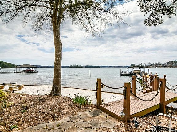Certainly one of the very best waterfront homesites on Lake Keowee. Your own private beach, covered dock, a gentle lot from the front of the home with its circular driveway providing plenty of parking to the grassy lakefront and beach. Do you have someone in your family that you deeply cherish that might have trouble getting to enjoy your covered dock? This homesite easily meets those needs. This home's gentle slope makes that possible. A brand new, 50-year architectural roof in slate gray was installed in October 2018 on this beautiful waterfront home with its panoramic view of Lake Keowee. The design captures the sparkling Lake Keowee water views from floor to ceiling windows with stunning views from the Master Suite, Great room, and Kitchen/ breakfast room. Three fireplaces, one in the Master Bedroom, one in the Great room and one in the terrace level Great room, add ambiance to this special Lake Keowee home. The waterfront deck has an incredible long water view and overlooks a gentle lawn that leads to a sparkling private, sandy beach and to the covered dock. The main level hosts an oversized Master bedroom plus two additional bedrooms plus a full bath for your guests. The Master Bathroom features travertine tiles, a roman tile shower which is approximately 4 x 7. The home has a surround sound, security system, and central vacuum. The terrace level is all about the views and entertaining family and friends as the space mimics the main level as the entertainment area is all open and features a 2nd kitchen, large great room/rec room, all windows/glass doors in this area face Lake Keowee and open to a patio leading to the gentle lawn, beach, dock, and water. A workshop/storage with exterior access is perfect for lake toy storage such as kayaks, paddleboards, noodles, life jackets/vests, etc. The views compliment this finely crafted waterfront home. Be sure to view the drone video so you can experience the beauty of this home and its location on Lake Keowee close to Seneca. There are many improvements to this home including the 50-year roof installed in October 2018 with a transferable warranty. The owner has replaced the decking boards and stair boards within the past two years; the main level AC unit has been replaced. The lower level kitchen was expanded to add the convection/oven range which has never been used! Granite countertops and tile backsplash have been added, the downstairs bath counter of stone/quartz replaced a laminate counter, added additional drawers in this downstairs bath along with a mirrored wall, the laminate top in the laundry was replaced with a Corian counter and a bottom mount sink. The owners added a wall-mounted shower head and mixer valve to the master shower and sliding glass doors to both bathtubs. Cabinets, countertops, tile backsplash and sink were added in the storage area. One of the most impressive improvements was the addition of wooden beams on the lower level ceiling to add character. An irrigation pump was added as well which draws from the lake. Wallpaper was removed and many of the rooms have been repainted. There are renderings for two possible outdoor shaded areas if a buyer is interested: off the breakfast room with an enclosed porch and the other is a gabled roof over the existing deck. This finely crafted waterfront home that is located close to town features exceptional views, water, and beach. The lower or terrace level features the 3rd fireplace, a lower level kitchen, two more bedrooms, a full bath, and laundry with an additional shower. In total, you have five bedrooms available to house your guests! The information provided is believed to be correct. Please verify.