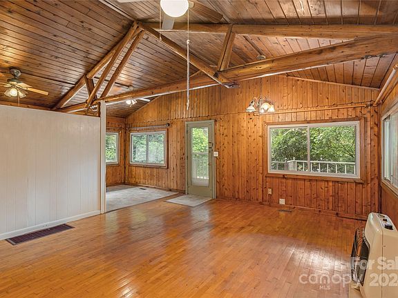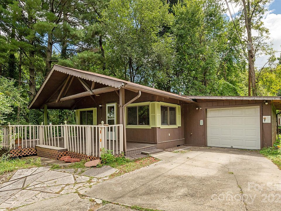 Minutes to Main Street! This Charming Cottage is located within the Hendersonville City Limits. 2 Bedrooms and 1 Full Bathroom. Private, quiet and close to everything you'll need. Stand out features include 12 foot vaulted ceilings, beautiful wood beam ceiling detail, hardwood floors, real wood wall and ceiling paneling, an expansive covered front deck and an attached 1 car garage. Every room has vaulted ceilings! City water and city sewer make ownership easy. Whether you are starting out, slowing down, or looking to own an investment property, this sweet home has so many possibilities. Home is being sold AS-IS. Come see!