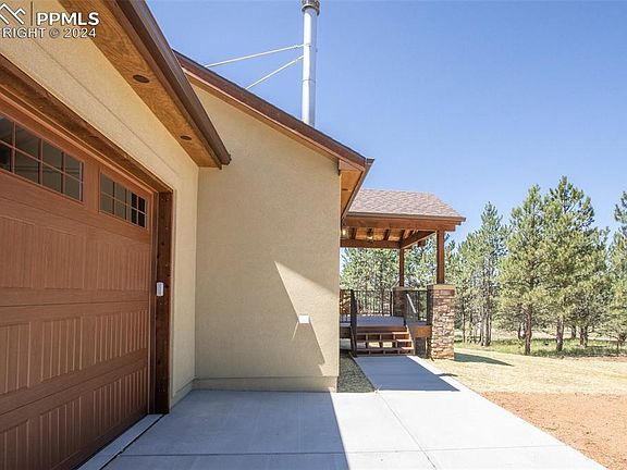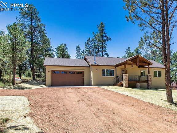 Construction is complete and home is ready for occupancy. Beautiful rancher tucked away into the trees. Excellent lot that is highly useable and almost flat!! Three bedrooms, two bath and two car garage. Excellent floorplan, vaulted ceilings in the living areas. Stainless steel appliance package, free standing wood stove and granite tops in the kitchen. Covered front porch with beautiful beam detail. High efficiency furnace, cement patio in the rear. Low maintenance stucco and rock exterior. Sunny location and easy access driveway. Consider the advantages of a new home: higher quality construction, more energy efficient, low maintenance and IT'S NEW. A private fishing pond is located within the community and hiking trails do enter into Mueller State Park.