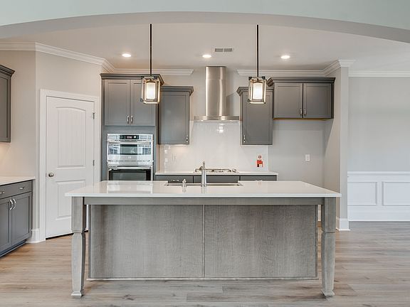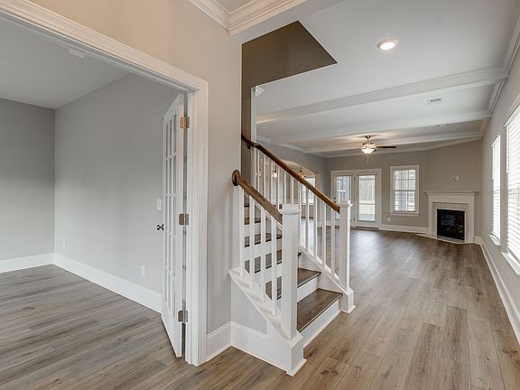 Checkout this this Jensen plan with three bedrooms and two an one-half bathrooms. Great curb appeal! Enter home from the large front porch and find a home office with French doors. The great room has a natural gas fireplace and architectural beams along the ceiling. The kitchen features a large island with quartz countertops, farmhouse style sink, drop-in gas range, wall oven and microwave combination, vented hood and eat-in space. The primary suite is located on the main level and has a tiled shower which is 5' x 5' and separate vanities. Luxury vinyl plank flooring runs throughout most of the downstairs living spaces including primary bedroom. Upstairs are two secondary bedrooms and a full bathroom. Outdoors, enjoy the community from the covered with screened porch, fireplace and fenced in yard.