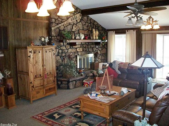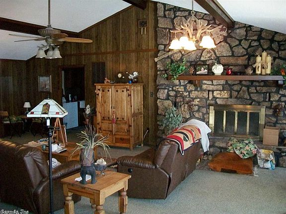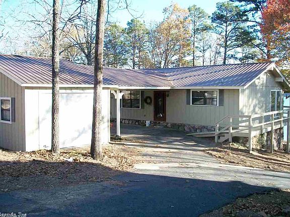 What a great lakefront home with an awesome view and easy walk to the water with a sandy beach. Lots of room for family and friends. Two level home with master bedroom on main level. Kitchen has loads of cabinets & counter space. Covered rear deck over looking the lake. Circle drive, carport, outside storage building with screened BBQ room. Garage off the carport for the lake toys. Storm safe room located in garage. Nice subdivision and quiet neighborhood. This Lake home comes completely furnished.