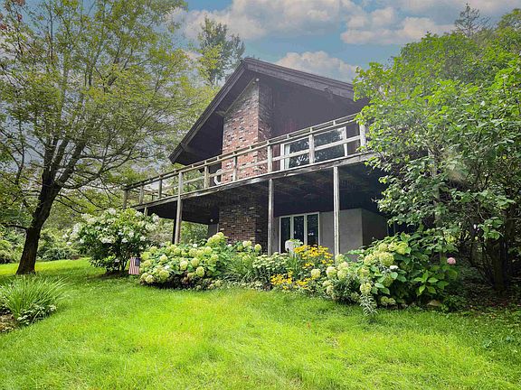 You can have it all! Well, almost- Enjoy country living in a peaceful setting at a bargain price. This wooden chalet with a wrap around deck overlooking the Green Mountains of Vermont is a sweet spot for your Vermont dream. On a private road, but easy 15 min drive to Bennington shopping and health services. Just up the road is the chocolate shop, pottery barn, and Lake Shaftsbury for picnicking , swimming and boating. The home features a vaulted ceiling in the living room area with a cozy fireplace and large windows to watch wildlife and snow falling this winter. There is a main level bathroom and bedroom as well as full kitchen and a loft above for a fun spot to look down to the fireplace. The lower level walk out has a finished family room with laundry and another full bath plus a bedroom that has it's own outside entrance. Perhaps a nice in -law space or guest area. Come do the final upgrades to make this home your own!
