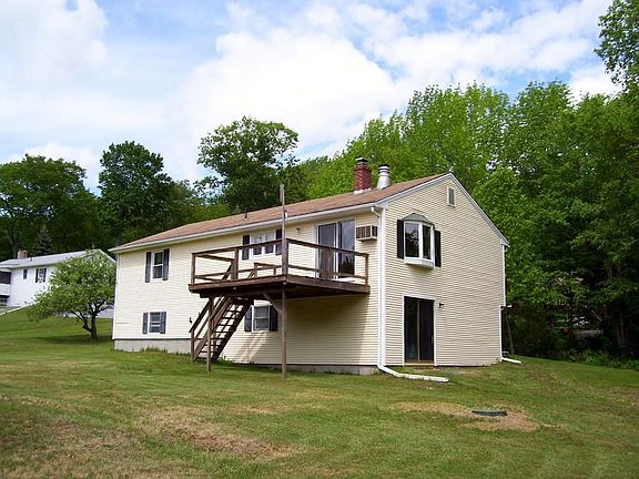 What a great location! One acre of rural feel, yet .7 miles to commuter routes. This one-owner home has been well maintained, just needs a few cosmetic updates. It offers a floor plan that flows nicely from the large living room with beautiful bay window and working fireplace, to the dining room with hardwood flooring and large sliders leading to the deck. Kitchen overlooks the lovely back yard which offers privacy and lots of room for entertaining or playing, and is bordered by fruit trees on one side. Down the hall from the kitchen you'll find 3 bedrooms and a full bath, and the master bedroom has a separate 1/2 bath. New laminate flooring in living room and hallway. Large clean dry basement with laundry area and possible extra living space potential. Hot water baseboard heat/hot water provided by a 10-years young boiler. This property will not last long, so call today for your showing!