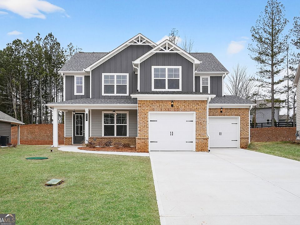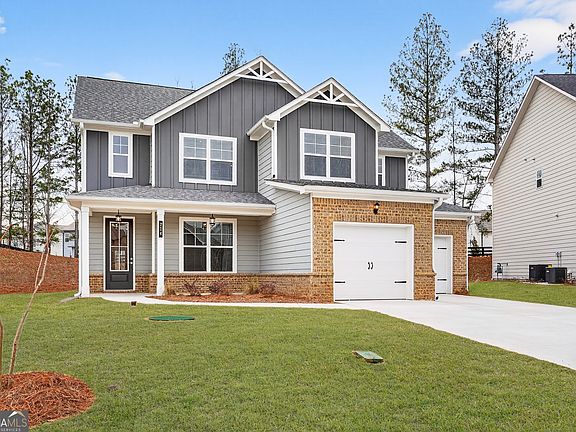 Peachtree Building Group proudly presents the stunning Peachwood Tandem Floor Plan on Lot 10, offering exceptional style, space, and functionality in a premier golf community. This beautifully designed home features 4 bedrooms and 2.5 baths, highlighted by a luxurious primary suite on the main level and a convenient half bath for guests. Step inside to find an open and inviting layout with luxury vinyl plank flooring throughout the main level, primary bedroom, and upstairs loft, complemented by a sleek Progressive Lighting Satin Nickel package. The chef-inspired kitchen showcases stainless steel appliances, tile backsplash, and large 42" soft-close cabinets, along with elegant brushed nickel pendant lighting-perfect for both everyday living and entertaining. Cozy up by the modern Allusion recessed linear electric fireplace with stylish surround in the living area. The primary retreat boasts a spacious walk-in closet, a frameless shower enclosure, and tiled shower walls and base for a spa-like experience. Upstairs, you'll find three generously sized bedrooms, a hall bath with double sinks and a separate tub, plus a huge loft-ideal for a game room, media space, or home office. Enjoy outdoor living year-round with a large covered front porch and a covered back patio, perfect for relaxation or gatherings. Additional features include window screens throughout, cordless blinds, a WiFi-enabled garage door opener with two remotes, and LVP treads on the interior stairs. The home also includes a 2-car Tandem garage with added space for a golf cart for added storage and convenience. Residents benefit from outstanding resort-style amenities, including: * Two 18-hole golf courses * Tennis and pickleball courts * Three swimming pools * Two clubhouses * Country club with on-site restaurant Buyer Bonus: Enjoy a complimentary 1-year golf membership to Mirror Lake & Chapel Hill Golf Clubs, $35,000 Flex Cash, 1% lender credit, and no payments until May 2026! Ideally located near I-20 with easy access to schools, shopping, dining, and gas stations-this home truly offers lifestyle, comfort, and value. Move-in-ready and ready to close!
