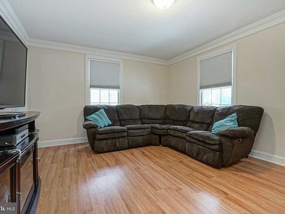 Welcome Home to this charming three bedroom cape home with full basement on quiet street. Exterior offers maintenance free vinyl siding, covered front and side porch as well as a massive driveway. Enter into the living room with neutral paint, crown molding and laminate wood flooring which flow throughout the majority of the home. The eat-in kitchen is just beyond the living room with tile flooring, oak cabinetry, granite counters and stainless appliances. Access to the side porch is here. Down the hall, two bedrooms with generous closets and full bathroom are found. The entire 2nd floor is a massive master bedroom. Nice size fenced yard with shed for added storage. Full basement provides plenty of space for storage. Entire property was renovated approx 6 years ago including roof and HVAC. This is truly a worry-free home!