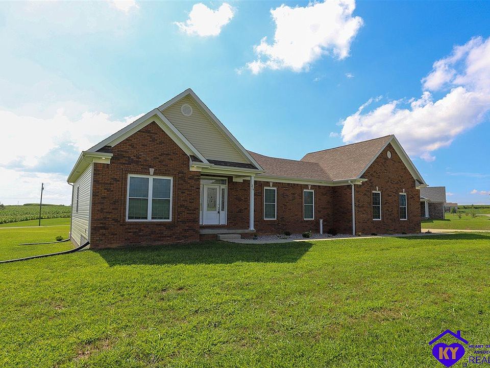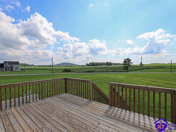 Fall in love with this stylish home that is beautifully nestled on a large 1.38 acre corner lot, with some of the most peaceful views in Hardin County! As you enter the home you will find vaulted ceilings in the great room & dining area, a gas fireplace & 9 ft. ceilings throughout the main level. The spacious great room features laminate flooring and a large space for entertaining. The kitchen is fully equipped with an island, desk area, beautiful white cabinets, granite counter tops, a stainless appliance package and tile flooring. The master suite has a trey ceiling, a large walk in closet, a double sink granite top vanity, garden tub and a separate stand up shower. This home has a desirable split bedroom floor plan. The walk up basement has a finished 3rd full bathroom and plenty of space to finish for additional living space, or an abundance of storage. Exterior features include a concrete driveway, landscaping, deck and more.
