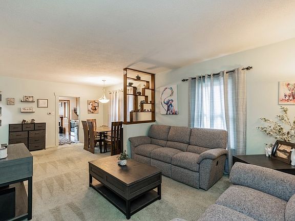 Great starter home! As you walk in, you will see an enclosed porch that opens up to a spacious living room, 2 bedrooms, a full bath remodel and a kitchen with new flooring and appliances (2023). Main level also features a second family room with fireplace perfect for entertaining. Basement has plenty of room for storage and extra room which could easily be turned into an office or 3rd non-conforming bedroom. Many updates have been done including fresh paint outside, roof and gutter (2021), water heater (2022), insulation (2022), and much more! A large backyard along with a 1 car detached garage - Don't miss out, come take a look today!