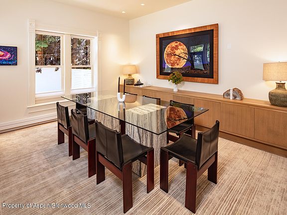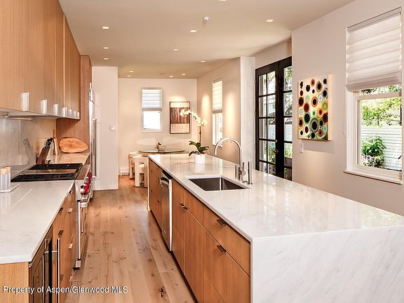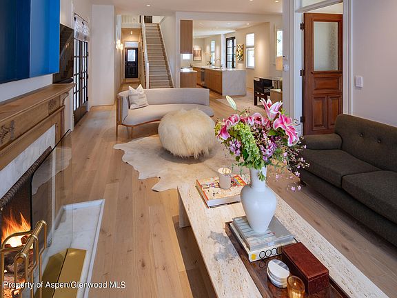 A fresh take on an Aspen classic, this completely updated Victorian, originally built in 1888, has amazing light, outdoor space and a coveted location in the West End. Light and airy, the entire home has been flawlessly transformed into a contemporary space that is both beautiful and functional. An excellent space for entertaining, the open living, kitchen and dining room is encompassed within the main level with vaulted ceilings and sophisticated furnishings. The versatile layout has five bedrooms plus an office, four and a half baths, mudroom, along with a media area/den and a bonus room on the lower level. A luxury finish package was implemented throughout the interiors, and includes white oak flooring and cabinetry in the kitchen with complimenting Pegasus marble countertops. Noguchi and Murano lighting on the main level adds to elegant ambiance. The spa-like primary bath was also renovated with the addition of a soaking tub, Taj Mahal quartzite, oak cabinets and new fixtures. The residence was also improved with a new cedar roof, interior and exterior paint, upgraded plumbing and electrical systems. The inside connects seamlessly to the well landscaped outdoors, with a spacious lawn on one side and a terrace lounge on the other, where views of Aspen mountain can be enjoyed year round. Only a two block walk to all the shops, restaurants, arts and culture of downtown.