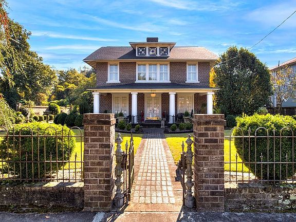 Southern Elegance welcomes you to this Historic Colonial Style Home Featuring 5 BR, 3 BA and over 3700 sq ft. Fabulous layout w/Gracious Living room & Formal DR, Kitchen & Bedroom Downstairs and Additional bedrooms & Library upstairs. Southern Style Front Porch & Back Porchs, Brick driveway & Patio, Fountain, Birdhouses, Tons of Hydranges & Various other flowers add to the charm of the Gracious Gardens included with this home. 7 Charming Fireplaces, 2 Car Detached Garage/Workshop. Must See all the Extras this Charming home & Yard has to Offer. New Stainless appliances & New Roof.