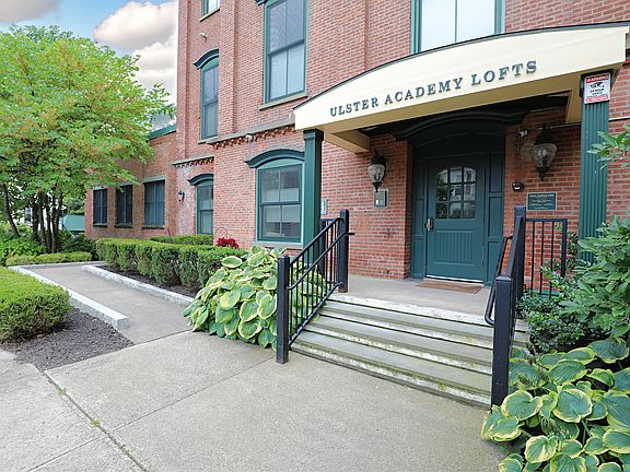 Rare opportunity to live in Kingston's beautiful Ulster Academy Lofts. Originally built in 1870, this building was once the largest school in Ulster County. In 2005, it was fully renovated into condominiums. This is a first floor unit, measuring over 1,400 square feet. Open living area concept with 10ft ceiling height and wide doorways. It has a large den that can easily be used as a second bedroom, guest room or home office. Plenty of natural light throughout. In addition to everything this unit has to offer there is also off-street parking, and an elevator to the shared rooftop deck! Tenants pay for gas and electricity. Owner pays HOA fees. No Smoking. 1 month security deposit and first month's rent due at lease signing. Excellent landlord references are a must.