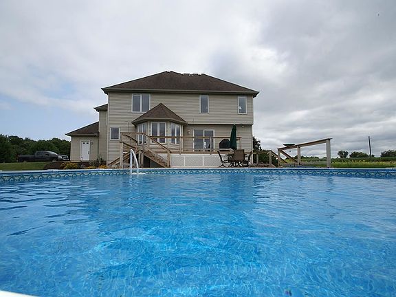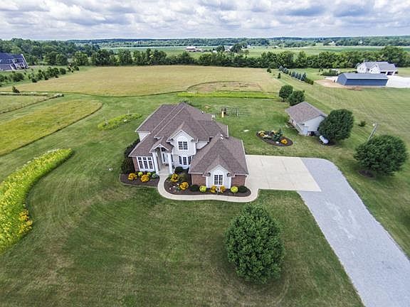 Wow, a little slice of Heaven. Almost 7 Acres with Great Curb Appeal. Open 2 Story Foyer with a Double Stairway. 1st Floor Den with Trey Ceiling & Floor to Ceiling Windows. Formal Dining Room with a Bay Window. Open Great Room Kitchen Breakfast Room all overlooks the Back 5 Acres. Kitchen with Large center island, High End Stainless Steel Appliances. Breakfast Nook with Bay Window Opens to 2 level Trek Deck and Pool. Great Room with Ceiling Fan & Lots of Windows for natural light. Finished Basement with a Stone Gas Log Fireplace. Theater area with a built in screen & Surround Sound. Nice Storage Areas in Basement. Master Bedroom on 2nd Floor with a HUGE Walk In Closet, Updated Full Bath with a new Tile Shower, Jacuzzi Tub, Tile Flooring, Custom Cabinets with a Corian counter tops. A bathroom you will want to wake up for every morning! Nice Sized 2nd, 3rd & 4th Bedrooms. Updated 2nd Full Bath with Custom Cabinets, Corian Counter tops with Double Sinks, & separate shower/toilet area. 3 Car Garage plus an Out Building for all of your Toys and Stuff. Only 25 minutes from Jefferson Pointe, 30 minutes to Zimmer. Other Notables: 6 Panel Wood Doors, Fresh Paint Inside & Out, Newer Carpet, Updated Lighting, High Efficiency Furnace, Seller Owns Propane Tank, Seller will Provide new Buyer with a Global Home Warranty Gold Plan. A Must See!
