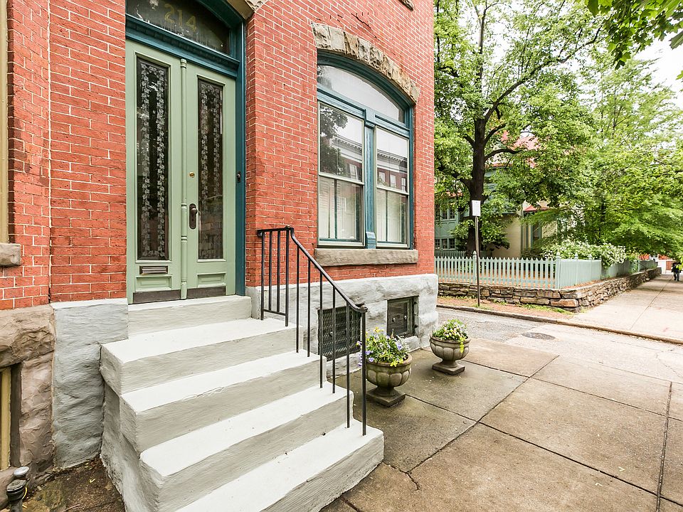 Light filled corner townhome on one of Bolton Hill's prettiest blocks. Clever kitchen addition creates an eat in kitchen w/ plenty of counter space and loads of storage. French doors lead to extra deep rear garden w/ off street parking. 2nd Flr has 2 bdrms & open plan family room. Entertain anyone!First Fl wheelchair accessible! Close to Penn Station for MARC, AMTRAK and JHU shuttle!EZ DC commute!