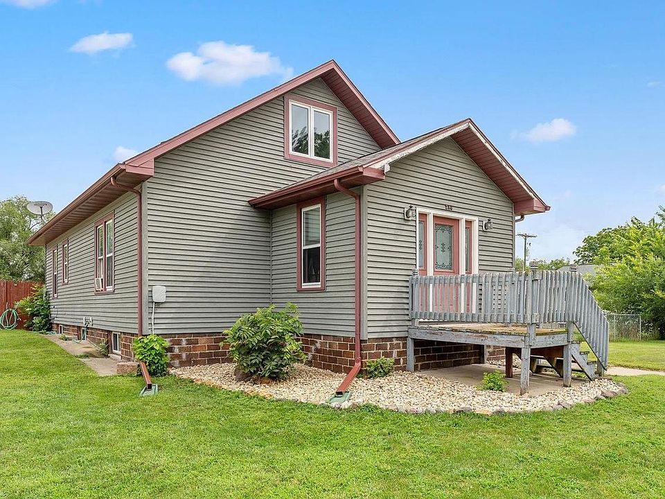 Welcome to your charming Bungalow in the heart of New Lisbon! This home features 3 bedrooms and 1 full bath, perfect for those seeking a cozy abode. The main floor features spacious living and dining areas, providing ample space for entertaining and everyday living. The well-appointed kitchen is ready for you, and the quaint 3-seasons front porch offers a serene spot to relax. The main floor also includes a large primary bedroom with a walk-in closet, a 2nd bedroom, and a full bath. Upstairs, you'll find the 3rd bedroom and a versatile bonus room, ideal for a den or home office. Outside, enjoy the expansive fenced-in yard, perfect for gardening, play, or pets. The large lot offers plenty of space for outdoor activities, & the 1-car detached garage provides additional storage & convenience.