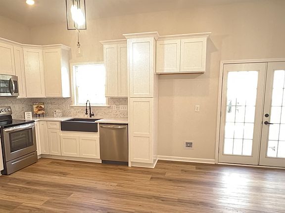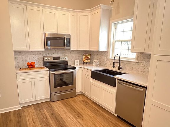 Charming remodeled 1909 Ranch in the heart of downtown Zebulon, walking distance to everything. This home features modern upgrades 3 bedrooms, 2 bathrooms beautiful kitchen with Quartz countertops and Stainless Steel Appliances, French doors leading out to the patio from the dining Area, lots of Natural light 10 ft ceilings, large back yard. You have to see it, words alone do not describe it. This is a whole house renovation it a New Roof, Siding, floor joists, piers, subflooring, flooring, sheetrock, wiring, plumbing, HVAC, Exterior Wall insulation replaced, New Windows, Doors, Appliances, Fresh Paint, New Bathrooms. Certificate of Compliance in documents. Please make sure all lights are turned off and both door and Deadbolt are locked.