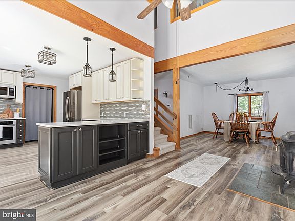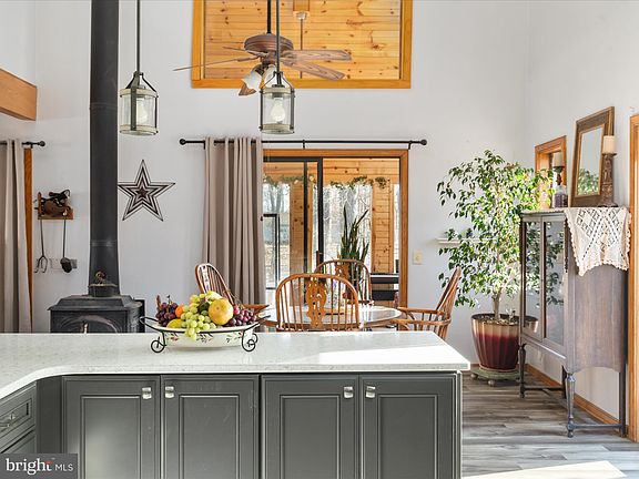 This 4-bedroom, 4-bath home offers plenty of space and versatility, set on a private 5+ acre wooded lot. The upgraded kitchen features quartz countertops, stainless steel appliances, and ample cabinetry. The main level includes a bedroom or additional living space, a full bath, and a laundry room for added convenience. A two-story sunroom/Florida room at the back of the home provides extra space for relaxing or entertaining. The partly finished lower level includes a family room and another full bath. Outside, a separate garage with a woodstove, water, and its own electric meter offers endless possibilities—perfect for a workshop, studio, or additional storage. Located in a quiet private community in Clear Brook, this home is ready for its next owner to make it their own. Schedule a showing today!