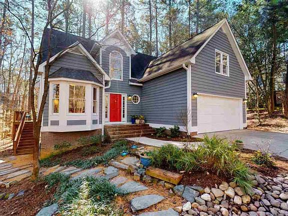 Beautiful Transitional on quiet cul-de-sac lot in Bolin Forest! Open floor plan boasts soaring ceilings in family room with cozy gas log fireplace and coveted 1st floor master bedroom suite. Three more bedrooms upstairs, all with walk-in closets & xtra storage space. Enjoy coffee on the deck before walking along Bolin creek trails or to playgrounds. The lovingly landscaped yard with terraced stone patio is perfect for relaxing & entertaining outdoors. No driving today, just a short bike ride into town!