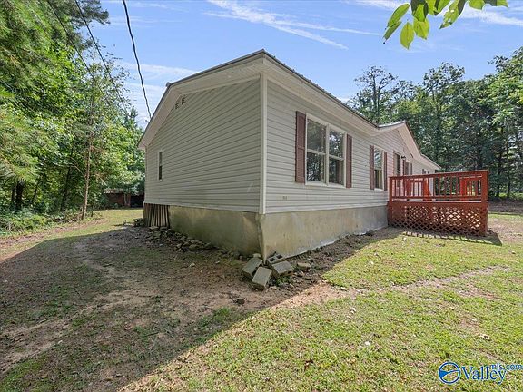 Mobile home with metal skirt, new carpet and fresh paint on 3-acre lot with pond. Located on a dead-end road with no thru-traffic. Less than 15 minutes to Cathedral Caverns State Park and 20 minutes from Scottsboro retail trade centers. All appliances in the house are conveyed with the home. Shed in the backyard conveys with home.